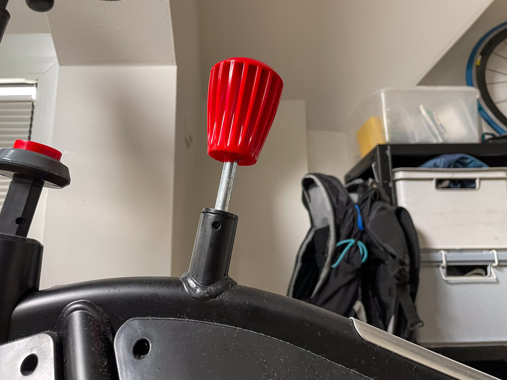 Und so suchte ich mir über das Touchdisplay gleich mal eine Strecke in Neuseeland heraus, auf der ich die ersten echten Runden drehte. Schön ist, dass sich die Workouts auf unterschiedliche Strecken legen lassen. Dass sich die Geschwindigkeit an die Strecke anpasst, wie Bowlfex angibt, habe ich nicht gemerkt oder die Einstellung nicht gefunden. Das Menü war aber einfach zu bedienen und es konnte losgehen. Eine automatische Bremse wie bei Modellen der Konkurrenz (beispielsweise über Bluetooth) fehlt. Dementsprechend gab es auch keine smarte Bremse, die den Tretwiderstand steuert. Das wird beim VeloCore über die rote, manuelle Dreh-Bremse in der Mitte des Heimtrainers eingestellt. Das machen andere Rollentrainer, insbesondere beim nutzen von Zwift, besser. Man sollte auch wissen, dass der Mechanismus keinen Leerlauf hat und die Füße bei schneller Fahrt immer mitdrehen müssen. Auch dafür ist die Bremse da, die, wenn man darauf drückt, das Schwungrad abbremst.