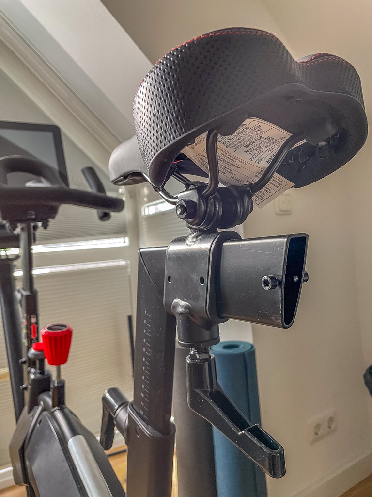 Vor der ersten, überraschend leisen Ausfahrt stand aber erstmal ein obligatorischer Fitnesstest, damit der Algorithmus eine Datengrundlage für die Intensität der nächsten Trainings bekam. Auf dieser Datengrundlage berechnete das System die nachfolgenden Trainingseinheiten. Der Test dauerte ein paar Minuten und ist durchaus anstrengend. Dabei fährt man, der Trainerstimme folgend, mit einem bestimmten Widerstand, den man einstellen muss. Ich hab beim Radfahren noch nie so geschwitzt (was nur bedingt an der Hitze des Dachzimmers gelegen hat) und bin froh eine Matte unter das VeloCore gelegt zu haben. Eines wurde mir dabei deutlich: die Trainings werden herausfordernd.